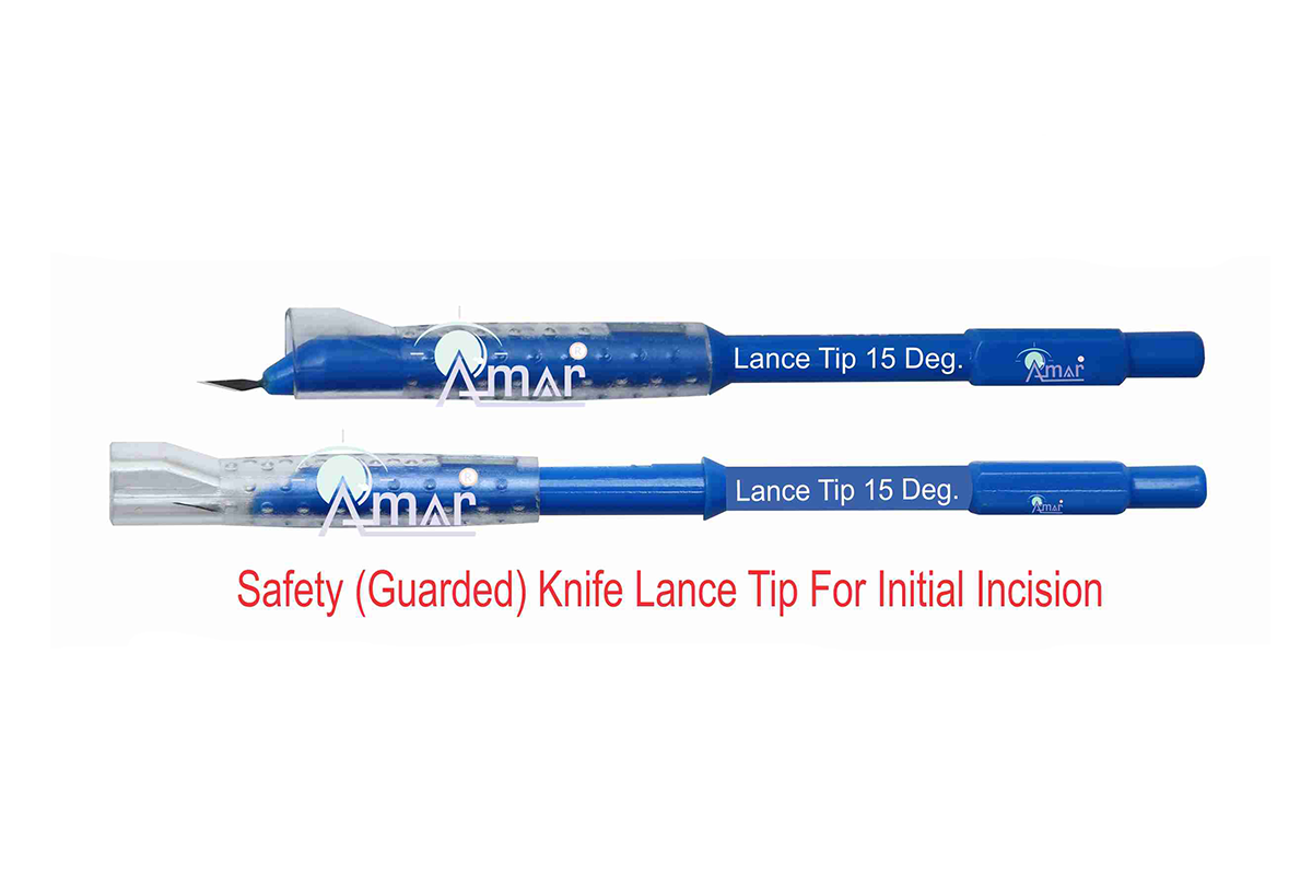 These Safety (Guarded) Lance Tip Knives are designed for making corneal / limbal incision. They are found to be very suitable for making side port. These Safety (Guarded) Lance Tip Knives are available in 15, 22.5, 30, and 45 degree.