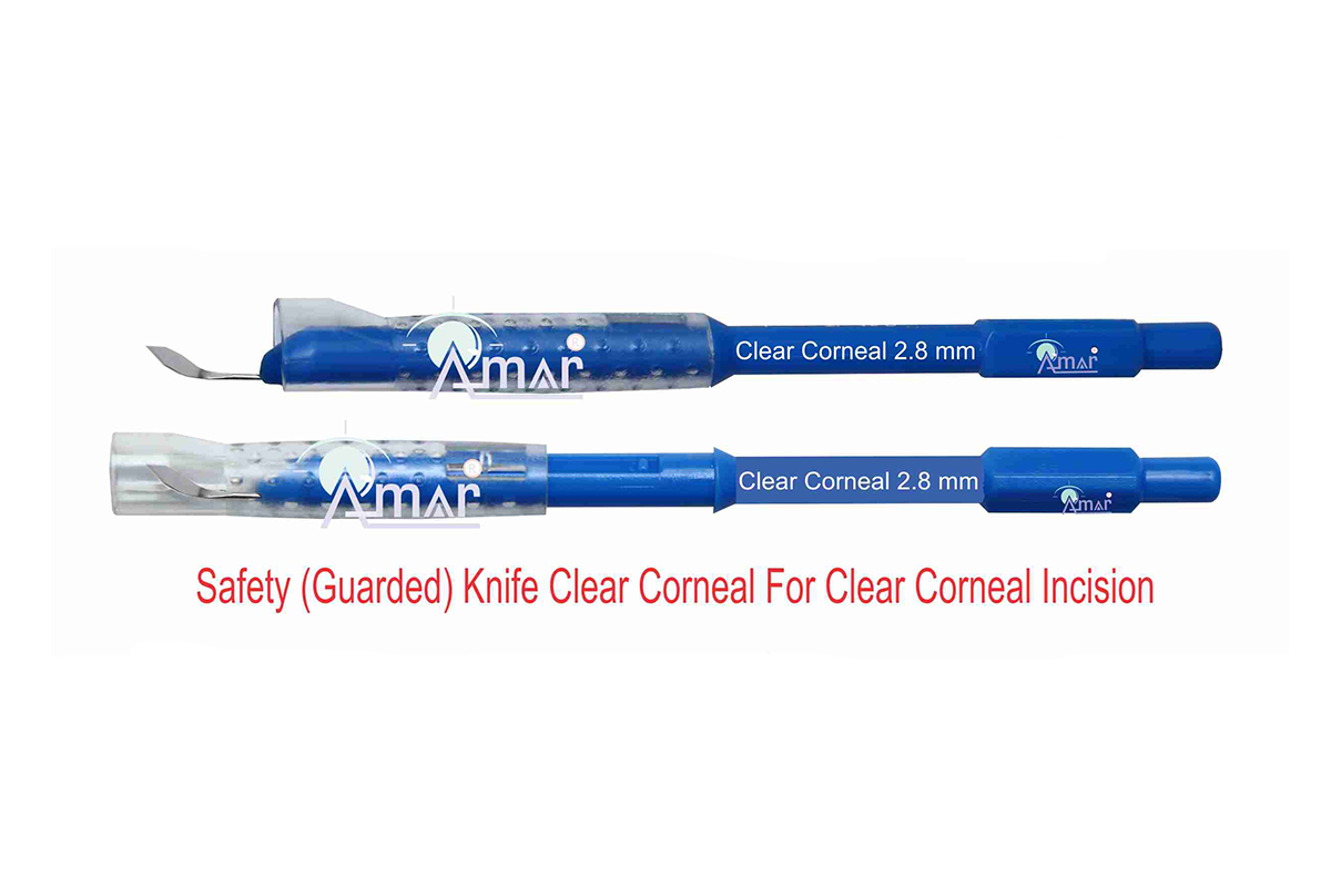 These precise width Safety (Guarded) Clear Corneal Knives are designed for clear corneal incision. These Safety (Guarded) Clear Corneal Knives are available in 2.2 mm to 3.2 mm